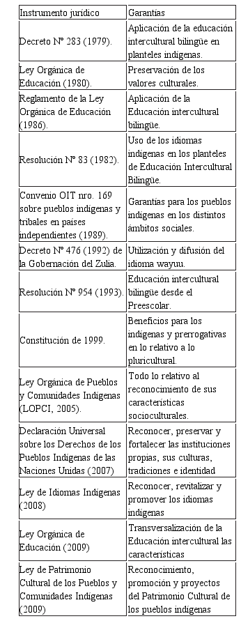 A partir de la promulgación de la Constitución de 1999, en Venezuela se creó la Dirección de Educación Indígena, se reconoce carácter de modalidad educativa a la educación intercultural bilingüe y se crea el Consejo Nacional de Educación, Culturas e Idiomas Indígenas, lo que ha favorecido la instauración de un basamento institucional y legal que podría permitir la instauración de cambios orientados por los actores indígenas.