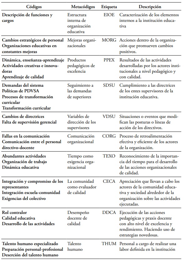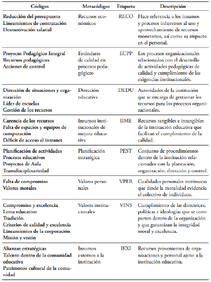 A partir de los códigos primarios, se procede a interrelacionarlos a fin de crear categorías de mayor tamaño, que dentro del análisis estructural prospectivo son entendidas como metacódigos.