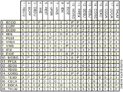 Esta estimación se representa de forma numérica de la siguiente manera: el 0 era nulo; el 1 poseía una ponderación baja; el 2 era mediana; el 3, alta; y P (4) si ubicaban una relación Potencial (entre las variables).