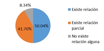 Otro elemento a investigar fue si consideraban que la equidad está relacionada con la calidad educativa. La mayoría de la población docente encuestada considera que es una relación parcial o total con la calidad educativa; sin embargo, un 25% opina que dicha relación se da «totalmente» y el 25% restante cree que para «nada se relacionan». Al analizar las respuestas se observa que se contradicen en la interrogante número 2, pues en ella la mayoría consideraba importante dicha relación, aspecto que ahora niegan o desconocen. Lo anterior permite observar que no hay claridad de que la equidad es un indicador de calidad educativa en una institución, es decir, que cuando una institución educativa no garantiza equidad a sus estudiantes afecta la calidad de sus servicios. En cuanto a los alumnos, un número significativo manifiesta que existe relación ya sea total o parcial entre ambas.