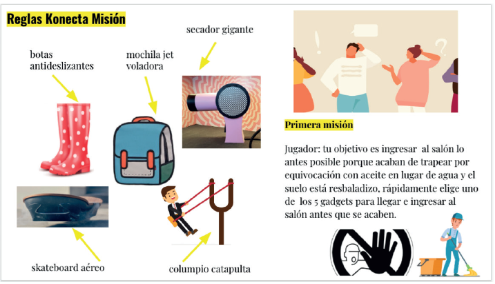 Con el primer juego Konecta, en el que los alumnos tenían que elegir un gadget para cumplir su misión, el 40% lo calificó de algo divertido y el 60% lo calificó muy divertido. Nos confirmaron que el sistema de juego y las instrucciones fueron fáciles de entender y realizar, algunos grupos idearon su propio sistema para adivinar la solución y comentaron que gracias a este juego fue la primera vez que conversaron entre ellos. Además, nos sugirieron nuevos temas para las adivinanzas.