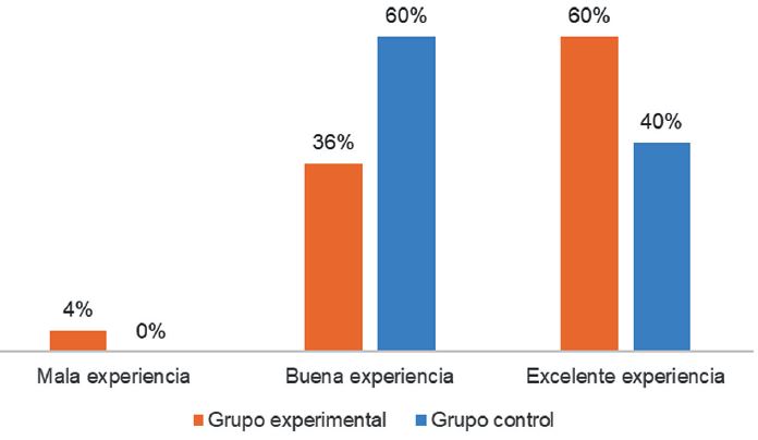 Cómo resultado final al medir la implementación de la herramienta lúdico-pedagógica DisKo podemos concluir que el 60% de los alumnos del GE la calificaron como excelente experiencia, seguido de un 36% que la calificó como buena experiencia, en comparación con el GC que consideró las herramientas habituales con un 60% como buena experiencia. Todos estos indicadores se midieron a partir de dos encuestas efectuadas al GE y GC.