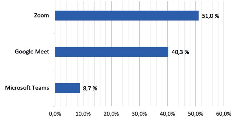 De ahí que Verá (2021) menciona que «en el mundo académico, las preferencias tecnológicas de los usuarios (individuales y corporativos) parecen inclinarse fuertemente a las plataformas Zoom, Google Meet y WhatsApp. Mucho más atrás quedan MS Teams, Skype y Webex» (p. 44). Las razones son variadas: facilidad de uso, actividades interactivas o simplemente la cotidianidad a las plataformas virtuales de aprendizaje como es el caso de Moodle. Por otra parte, Cáceres-Piñaloza, (2020) establece: «El acompañamiento pedagógico y emocional es fundamental, pero siempre estableciendo reglas oportunas de convivencia en el espacio virtual…» (p. 42).