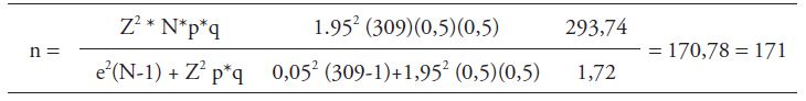 Utilizando el muestreo aleatorio simple con un nivel de confianza del 95%, un error máximo aceptable del 5%, la muestra resultante se establece en 171, para efectos de la investigación se recabaron 149 cuestionarios por motivos de la deserción estudiantil para este periodo. A continuación, se muestra el cálculo realizado: