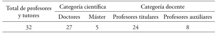 En la Tabla 1 se muestra la distribución de los miembros del claustro según su categoría científica y docente.