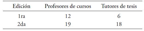 Por último, se presenta la relación directa que tuvieron los miembros del claustro con cada una de las ediciones concluidas (Ver Tabla 3).