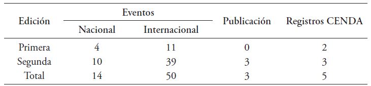 Como se puede apreciar, entre las dos ediciones concluidas, se tienen 64 ponencias presentadas en eventos científicos, la mayoría de carácter internacional, además se realizaron cinco (5) registros de propiedad intelectual, y se publicaron tres (3) artículos en revistas indexadas; todo esto evidencia una elevada producción y comunicación de los resultados científicos de los maestrantes, siendo similar en cada edición respecto a su matrícula, aunque superior en cuanto a publicaciones de artículos en revistas indexadas.