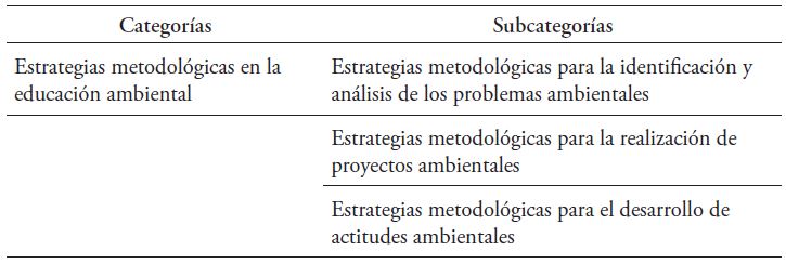Teniendo como categoría «estrategias metodológicas en la educación ambiental», analizó las siguientes subcategorías: