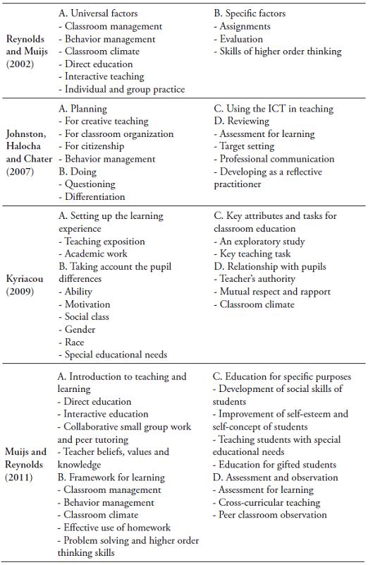 Finally, “other factors” are those influential variables outside the classroom that tend to promote effective actions to be taken by the teacher in the classroom. As “other factors” also included were other influential variables such as, Non-instruction time in tasks related to teaching and Teamwork activities.