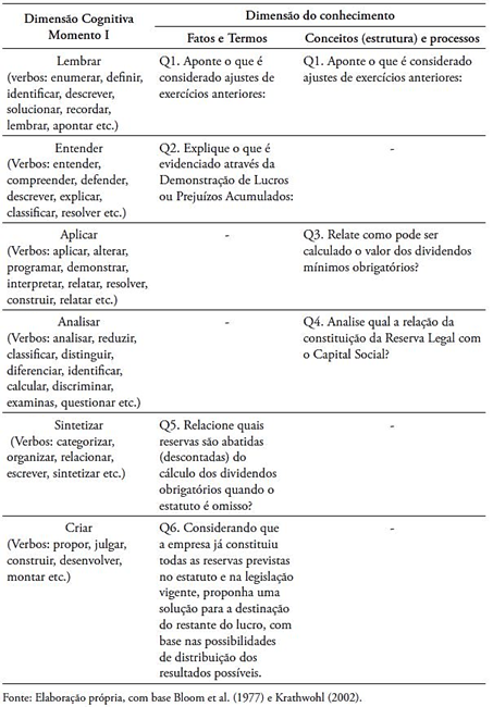Este instrumento permitiu analisar os estágios da dimensão cognitiva e o conhecimento desenvolvido em cada nível proposto por Bloom et al (1977) e Krathwohl (2002).