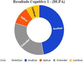 Assim, percebe-se que houve uma transformação no desenvolvimento cognitivo dos estudantes, quando se comparam estes resultados com aquele apresentado na avaliação realizada no momento zero, já que mais de 70%, no primeiro momento, não atingiram os níveis «lembrar, entender e aplicar»; e, após a aula expositiva e resolução de exercício sobre a DLPA, houve acomodação quanto ao conteúdo, visto que 9,38% «lembraram», 34,38% «entenderam» e 12,50% «aplicaram» estes conhecimentos de forma total, e, de forma parcial, 53,13% «lembraram», 31,25% «entenderam» e 50% «aplicaram» parcialmente. Cabe ressaltar, ainda, o desenvolvimento obtido no nível «Analisar», alcançado por 50% dos estudantes, depois da aula expositiva e da resolução de exercício.