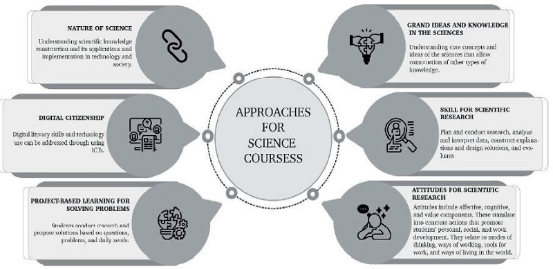 One relevant purpose of science education is to ensure that citizens achieve scientific literacy. The expectation is that children and adolescents learn the tools that allow them to apply the knowledge acquired during their education to confront and solve different problems of a scientific nature. To achieve this, the Chilean education system has established different approaches to address the themes of science subjects, such as the ability for wonder, scientific thinking, scientific research, the great ideas of science, scientific literacy, the nature of science, society, and scientific technology, problem and project-based learning, and digital citizenship. These issues are addressed at each educational level from kindergarten to secondary education, progressing continuously in degrees of complexity in such a way as to contribute to the scientific literacy of students from different perspectives and considering their interests.
