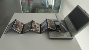 Un ejemplo de las narrativas docentes lo encontramos en la instalación Laptop, que plasma la evolución tecnológica en las aulas, mediante fotografías que nacen de un reproductor DVD portátil. Esta instalación incorpora un QR con los sonidos de una tiza que escribe en una pizarra y de las teclas de un ordenador. De este modo se aprovecha un elemento tan sencillo como el ruido de la tiza que sirve de recurso remarcando el poder de los sonidos para suscitar significados.