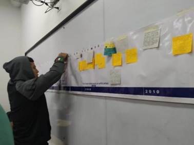 Durante los talleres la gran mayoría de estudiantes receptores participó activamente en la tarea de relatar por escrito o mediante dibujos, su experiencia personal, familiar o comunitaria en calidad de víctima del conflicto armado, ubicando en la línea de tiempo el momento de ocurrencia del episodio rescatado.