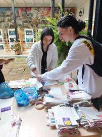 En segunda instancia, los estudiantes establecieron los elementos claves de cada momento de los talleres y la necesidad de producir materiales que acompañaran su desarrollo, seleccionando productos de distinto formato dispuestos en la plataforma digital del informe y se generaron códigos QR sobre algunos de ellos estimados como más apropiados para la reflexión colectiva. Otros productos, como fragmentos de novelas gráficas en formato fanzine y calcomanías, alojados en el kit movilizador del informe se escogieron para ser entregados a cada participante. Finalmente, algunos productos testimoniales fueron elegidos para ser presentados durante cada taller, y se definió la información básica a transmitir sobre la Comisión y sobre el informe, así como los elementos de armonización y aprestamiento del espacio.