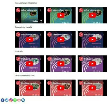 Esto implicó un nuevo proceso de debate y construcción colectiva al investigar sobre la pertinencia y discutir sobre el probable nivel de empatía con el público objetivo, de los cientos de productos alojados en el informe. Acciones concretas como la pesquisa, discusión, proposición, decisión concertada y puesta en marcha de la estrategia de talleres, dan cuenta del carácter de IAP de la investigación desarrollada por los actores nucleares, quienes fueron involucrados y sensibilizados desde su propia experiencia. Igualmente, la generación de nuevos productos comunicativos creados a partir de otros testimonios recogidos durante la IAP y difundidos en redes sociales, fue una acción comunicativa, pedagógica y participativa con potencial de hacer eco y dar continuidad al posicionamiento del tema de las memorias del conflicto armado colombiano en la agenda educativa.