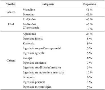 La presente investigación se realizó en la UNALM, con una población conformada por un total de 110 estudiantes matriculados en el curso de Desarrollo Empresarial, durante los periodos académicos 2020 II y 2021 I, distribuidos en tres grupos horarios: A*, B* y C* para cada uno de los periodos. Esta distribución de horarios asignados solo describe la programación de cursos y no posee ninguna intención metodológica. El muestreo se realizó de manera no probabilística intencional (Otzen & Manterola, 2017).