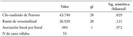 Se utilizó la prueba estadística de chi-cuadrado para analizar la asociación de las variables cualitativas; el tipo de conducta y el curso. El resultado de este análisis indica que existe una asociación estadísticamente significante entre el curso y el tipo de problema observado por los profesores (p = .029). Sin embargo, esto puede deberse a que el curso (sexto básico) con mayor número de respuestas sobre los problemas de conductas observados en la sala de clases, también es el curso con mayor número de respuestas en general (ver Tabla 3).