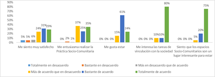 A nivel cognitivo y afectivo, desde las perspectivas de las estudiantes en este estudio, tanto las PDP como las PSC destacan por ser territorios donde se integra el conocimiento para resolver nuevos problemas y conocimientos provenientes de múltiples disciplinas, como lugares interesantes para estar y comprometidos en terminar a tiempos las actividades referidas a la docencia o de vinculación con la comunidad. Al respecto, la investigación de Martín y Bondar (2018) plantea que los escenarios educativos, desde diferentes disciplinas que enriquecen la comprensión, son esenciales para alcanzar la implicación en los procesos de formación. En la misma línea, Dalponte et al. (2016) sostienen que el compromiso del estudiante con el aprendizaje se logra al concebir a la práctica como un trabajo de integración disciplinaria en terreno, lo que facilita, a su vez, visualizar de manera temprana el quehacer profesional. A través de estos espacios de interacción “reales”, los futuros docentes tienen la oportunidad de poner en práctica los conocimientos adquiridos (Yáñez et al., 2014).