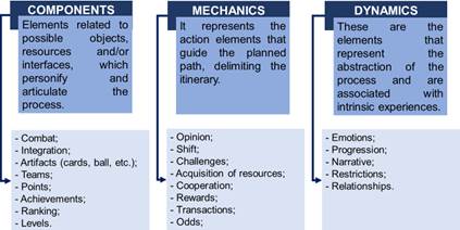 It is also important to emphasize that gamification is the process in which game elements are used in practices that are not games in order to promote engagement. Gamification should not be confused with other terms because, when structuring a gamified activity, one should use some game components, mechanics, and dynamics (i.e. game elements) to involve the participants so that they are intrinsically attracted and the objective of the action (engagement) is achieved.