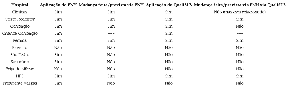 O quadro 2 mostra a relação dos hospitais públicos de Porto Alegre que aplicam as políticas do PNH e do QualiSUS.