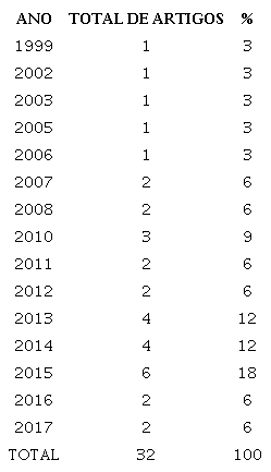 A tabela 2 explicita que os periódicos Ciências Sociais e Religião, bem como a Revista de Estudos da Religião (REVER), foram, ponderadamente, os periódicos que mais publicaram artigos envolvendo a relação entre gênero e religião. Porém, o que pode ser observado é a pequena quantidade de textos que abordam a temática dentro do universo de periódicos pesquisados. A mesma consideração pode ser feita no que se refere à publicação por sequência de anos destes artigos, como ilustra a tabela 3, sendo o ano de 2015 o auge das publicações de textos com a temática, o que, muito embora tenha demonstrado o interesse dos pesquisadores, contrapõe os números de publicações dos anos anteriores e seguintes.