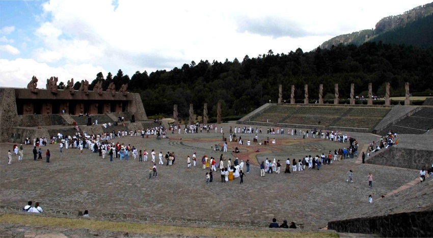 This vast cultural movement covers quite heterogeneous practices, which in turn emphasize bodily techniques, therapeutic practices not derived from allopathic medicine, and divinatory arts. There are some that are more body-related such as yoga or meditation, oracular systems such as astrology or tarot, and also alternative therapies including divination-related practices, reiki, aura-soma, neo-paganism and neo-shamanism.2 The practices that claim to be part of the New Age movement all have, to varying degrees, certain unifying elements: the call for a quest of personal transformation, the sacralisation of nature, the predominant importance given to the body as a physical and emotional resource, the constant reference to cosmic energy, an Eastern spirituality presented as an inverted mirror of the West, the claim that all religious traditions draw from the same source, the presence in each person of an ‘inner-self’ to be developed, an interest in ecological discourse, the belief that a universal communion binds all individuals, and a certain distrust of allopathic medicine (Lombardi, 2018).Another element that all these practices have in common is the constant gaze towards a temporal ‘elsewhere’ that sees the source of all well-being in a mythical past. In order to make this benevolent and glorious gaze on past eras credible and acceptable to practitioners, it needs material supports that reify it and help give a physical dimension to what would otherwise remain as metaphysical descriptions or historical reinventions. With regard, above all, to the reconstruction and diffusion of exotic cultures, we will see in this paper how the more or less ancient monuments present in Mexico can become the means to legitimise a form of neo-shamanism conceived and structured for Western people as ‘traditional’. Historical antiquities serve both as a necessary archaeological presence to confirm discourses referring to cosmologies unknown to the participants, but also become the material support for the creation and institution of new rituals that are constantly in flux.