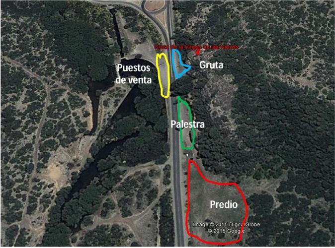 Los tres últimos espacios descriptos se configuran desde el lugar central que es la Gruta, no sólo porque se encuentran materialmente a su alrededor, sino porque constituyen simbólicamente la construcción territorial de un espacio sagrado imaginalis que por sus dinámicas internas remiten constantemente a la Gruta como epicentro.