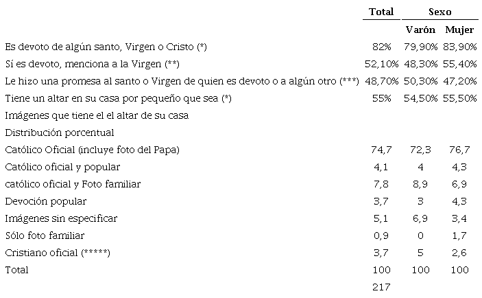 Los datos que sustentan el análisis provienen de dos fuentes. Una es una encuesta efectuada en el 2014 a una muestra representativa de residentes en villas de la Ciudad Autónoma de Buenos Aires –CABA-.3 La segunda son entrevistas en profundidad realizadas en el 2011-12 a mujeres residentes en un barrio precario del Gran Buenos Aires;4 entrevistas que nos permitieron ahondar en narrativas de “milagros” de mujeres pobres, en las expresiones cotidianas de su fe y en el sentido de sus devociones y promesas. Estas entrevistas sustentan el análisis de tipo fenomenológico que hago de la espiritualidad subyacente alimentada por esas prácticas;5 categoría –la de espiritualidad- a la que busco darle sustentación teórica luego de este recorrido.