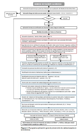 Figura 1.Flujograma aplicación guía de prevención de caídas basada en la evidencia.