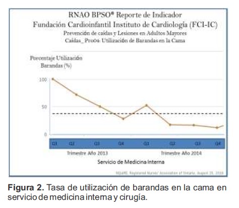 Figura 2. Tasa de utilización de barandas en la cama en servicio de medicina interna y cirugía.