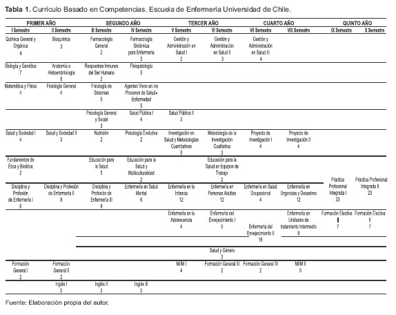 Tabla 1. Currículo Basado en Competencias. Escuela de Enfermería Universidad de Chile.