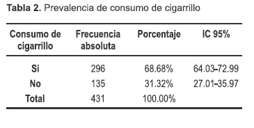 Tabla 2. Prevalencia de consumo de cigarrillo