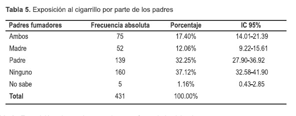 Tabla 5. Exposición al cigarrillo por parte de los padres