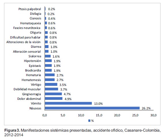 Figura 3. Manifestaciones sistémicas presentadas, accidente ofídico, Casanare-Colombia, 2012-2014