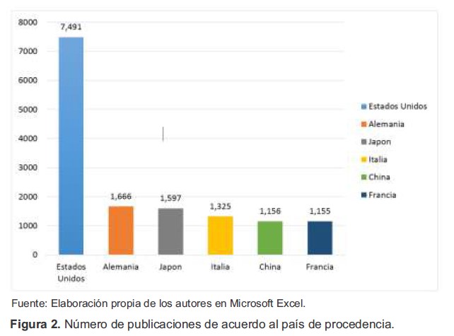 Figura 2. Número de publicaciones de acuerdo al país de procedencia