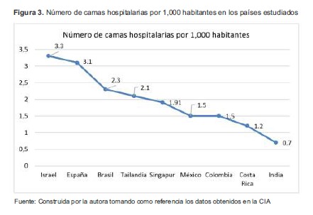 Figura 3. Número de camas hospitalarias por 1,000 habitantes en los países estudiados