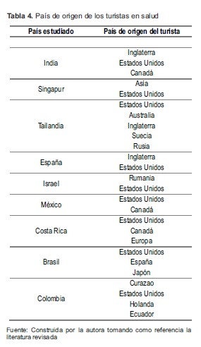 Tabla 4. País de origen de los turistas en salud