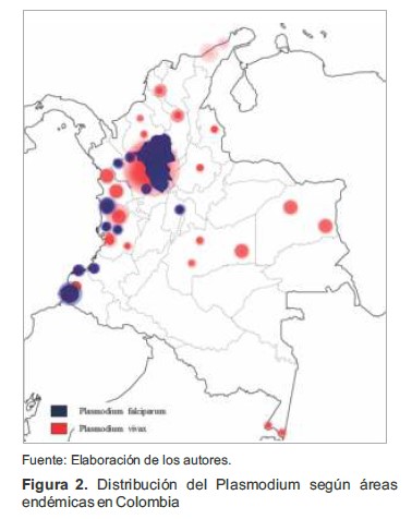 Figura 2. Distribución del Plasmodium según áreas endémicas en Colombia