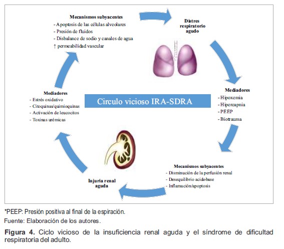Figura 4. Ciclo vicioso de la insuficiencia renal aguda y el síndrome de dificultad respiratoria del adulto.