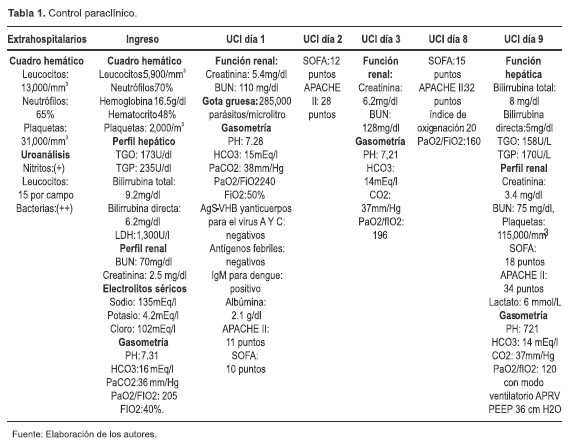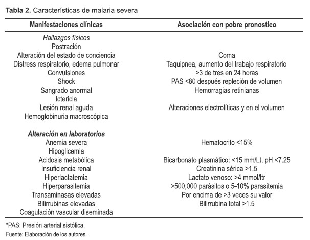 Se trató de un caso de malaria severa, acorde con los criterios de severidad de la declaración de la Organización Mundial de la Salud (OMS) para el año 2010 para este tipo de escenarios (21) (Tabla 2).