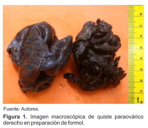 Figura 1. Imagen macroscópica de quiste paraovárico derecho en preparación de formol