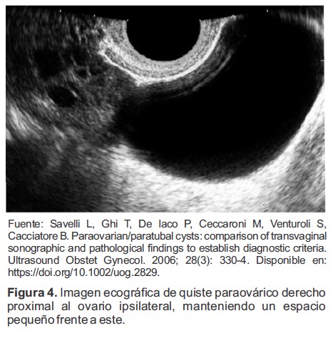 18. Savelli L, Ghi T, De Iaco P, Ceccaroni M, Venturoli S, Cacciatore B. Paraovarian/paratubal cysts: comparison of transvaginal sonographic and pathological findings to establish diagnostic criteria. Ultrasound Obstet Gynecol. 2006; 28(3): 330-4. Disponible en: https://doi.org/10.1002/uog.2829