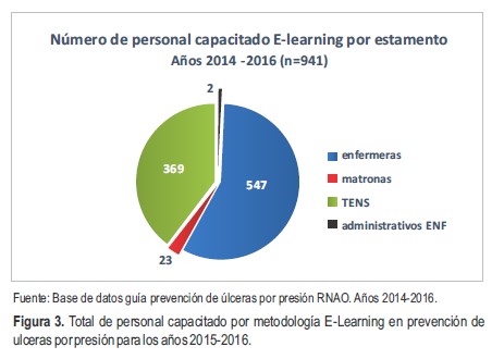 Figura 3. Total de personal capacitado por metodología E-Learning en prevención de ulceras por presión para los años 2015-2016.