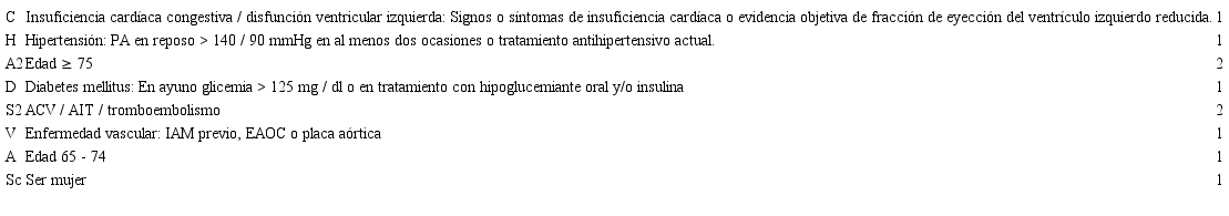 Tabla 1. Escala basada en factores de riesgo y expresada por el sistema de puntuación de la escala CHA2DS2-VASc