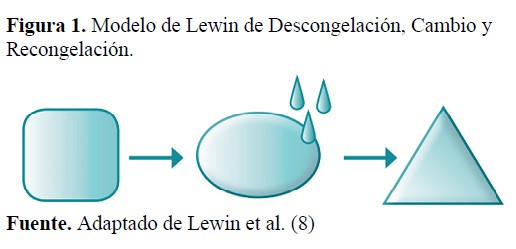 En esta fase es importante tener en cuenta el proceso de cambio, con refuerzo en el Modelo de Lewin de Descongelación, Cambio y Recongelación (Figura 1) (8).
