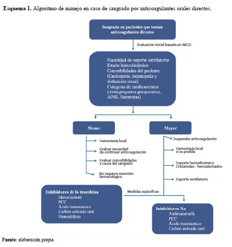 Esquema 1. Algoritmo de manejo en caso de sangrado por anticoagulantes orales directos.