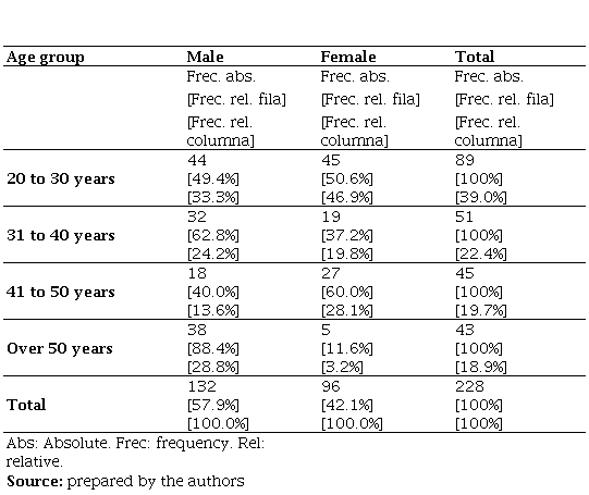Table 1.Distribution by age and sex of respondents