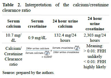 Table 2. Interpretation of the calcium/creatinine clearance ratio