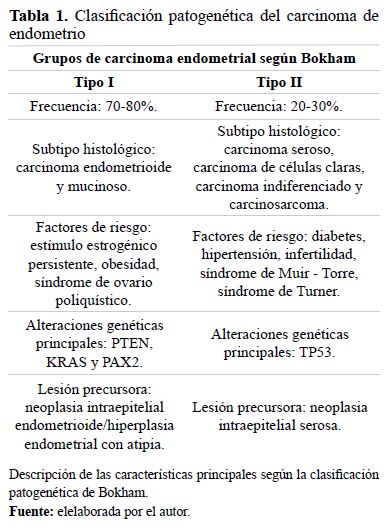 Tabla 1. Clasificación patogenética del carcinoma de endometrio